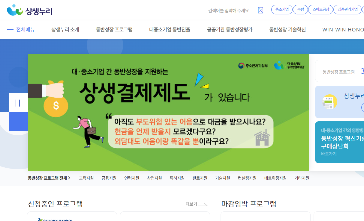 - 대기업·공공기관의 상생협력 프로그램 정보 통합 제공